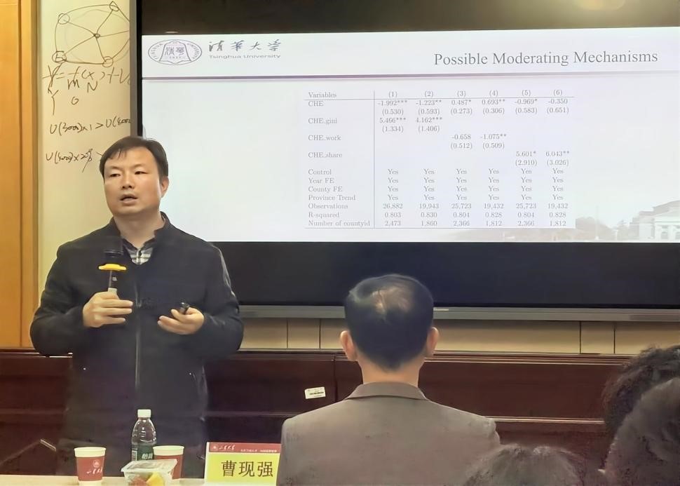 副院长孙涛主持。中国社会科学院数量经济与技术经济研究所研究员李军、清华大学公共管理学院副教授刘生龙分别以“未来经济是老龄经济——兼论人口老龄化对经济增长理论的影响”“More Access, More Competition: Unintended Consequences of Public Education Expansion in China”为题作学术报告。