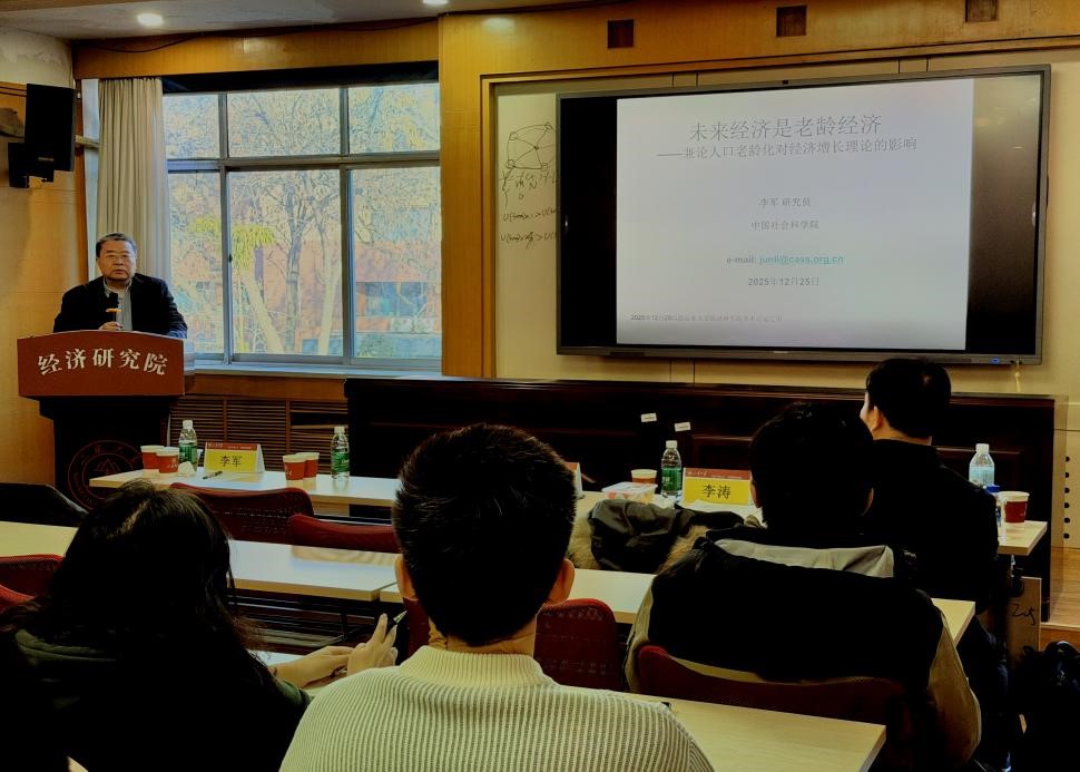 副院长孙涛主持。中国社会科学院数量经济与技术经济研究所研究员李军、清华大学公共管理学院副教授刘生龙分别以“未来经济是老龄经济——兼论人口老龄化对经济增长理论的影响”“More Access, More Competition: Unintended Consequences of Public Education Expansion in China”为题作学术报告。