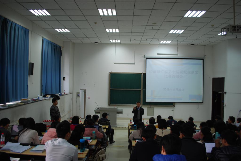 举办了第十届研究生论文比赛。本次论文从征文起,得到了全院硕、博研究生的热烈响应,共有论文90余篇交稿。经过老师的初步筛选,共32篇论文入围一、二等奖。2016年11月26日8:00,入围一、二等奖论文答辩会在知新楼C座201教室举行。现场气氛热烈,座无虚席。