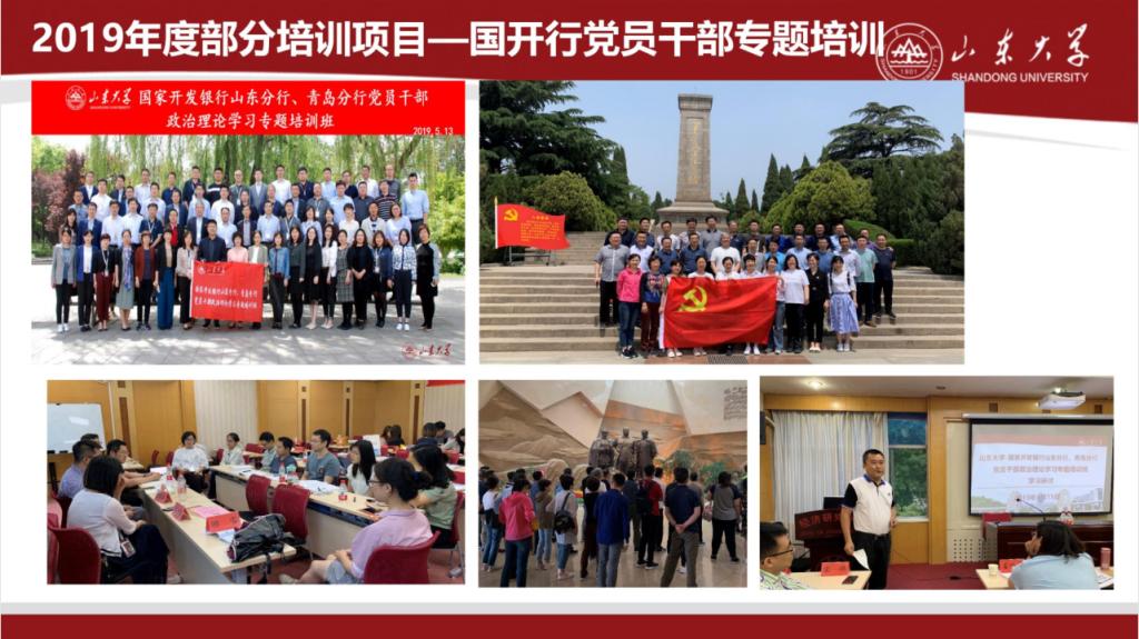 服务山东的重要举措,研究院设立培训部,以学校雄厚的师资力量为基础,整合学院、学校及其他院校、科研机构的资源,以社会需求为导向,强调前沿思维理念与实战经验相结合的培训特色,提倡体验式、参与式的教学组织形式,打造精细化、专业化的教学组织团队,根据政府机关、企事业单位的培训需求量身定制培训方案。