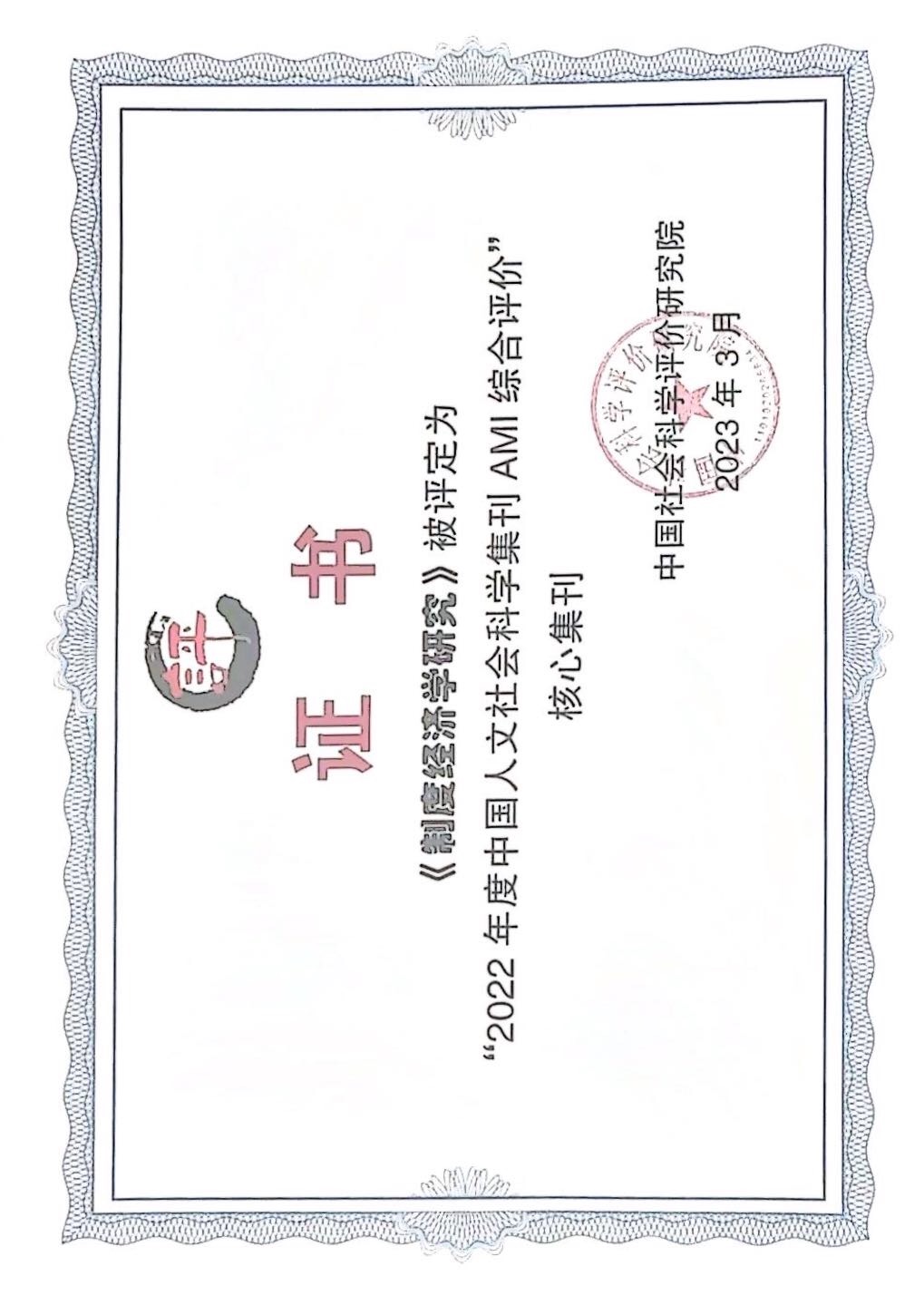 3月17日,中国社会科学评价研究院发布《中国人文社会科学学术集刊AMI综合评价报告(2022)》,《制度经济学研究》被评为核心集刊。报告显示,本次评价对403种中国人文社会科学学术集刊进行了评价,共评选出87种核心集刊,316种入库集刊;其中,经济学科共收录19种集刊,核心集刊5种,入库集刊14种。《制度经济学研究》成功入选中国人文社会科学集刊AMI核心集刊,彰显了《制度经济学研究》的学术影响力。这是中国社会科学评价研究院第一次开展学术集刊评价。